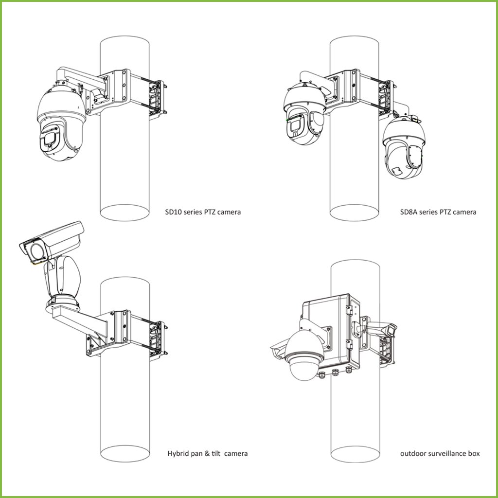 Adaptador a poste para Speed Domo, PTZ y cajas de vigilancia exterior Anticorrosión (Aluminio y Acero inoxidable) cantidad