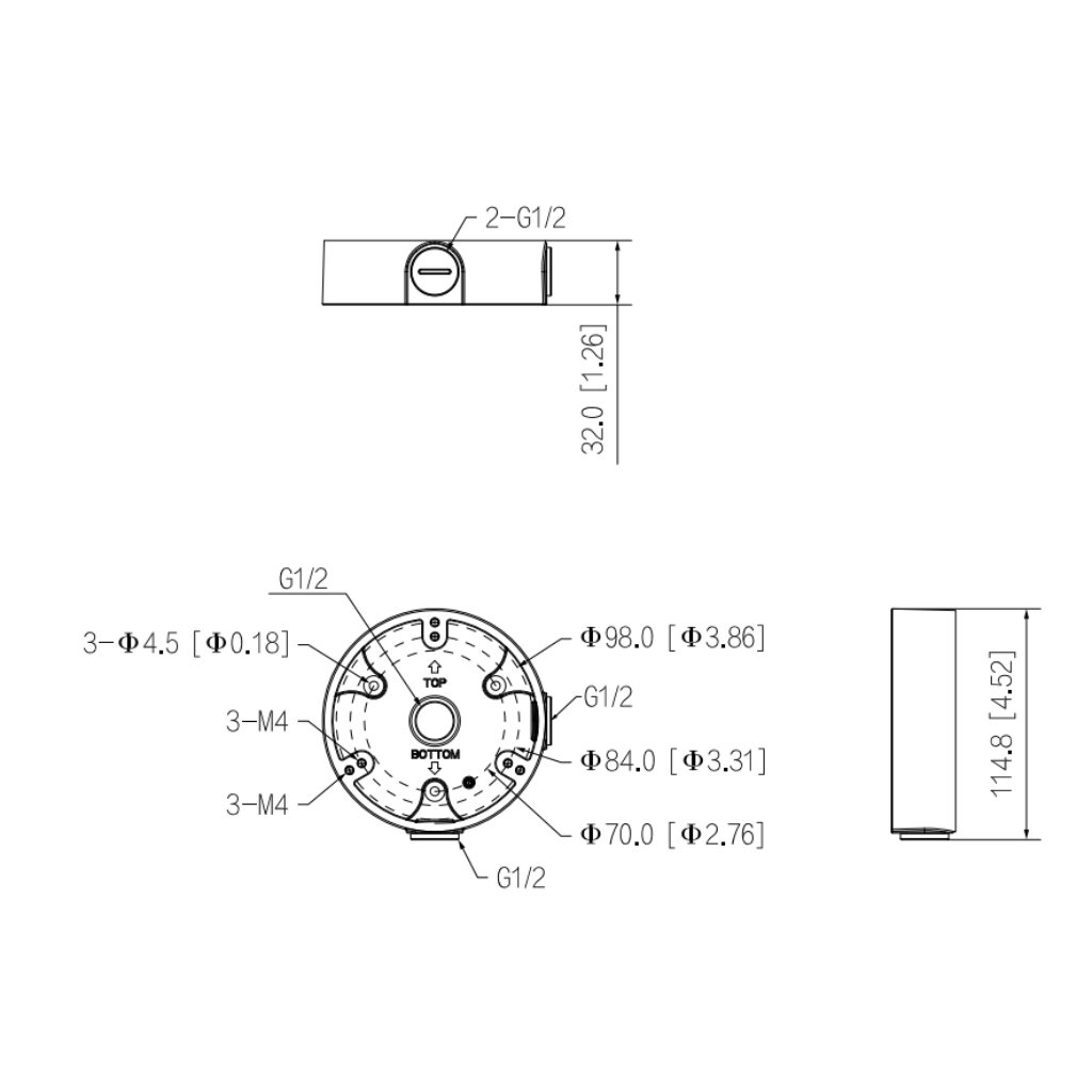 – Caja de conexiones circular Impermeable Dahua con anclaje en 3 puntos.