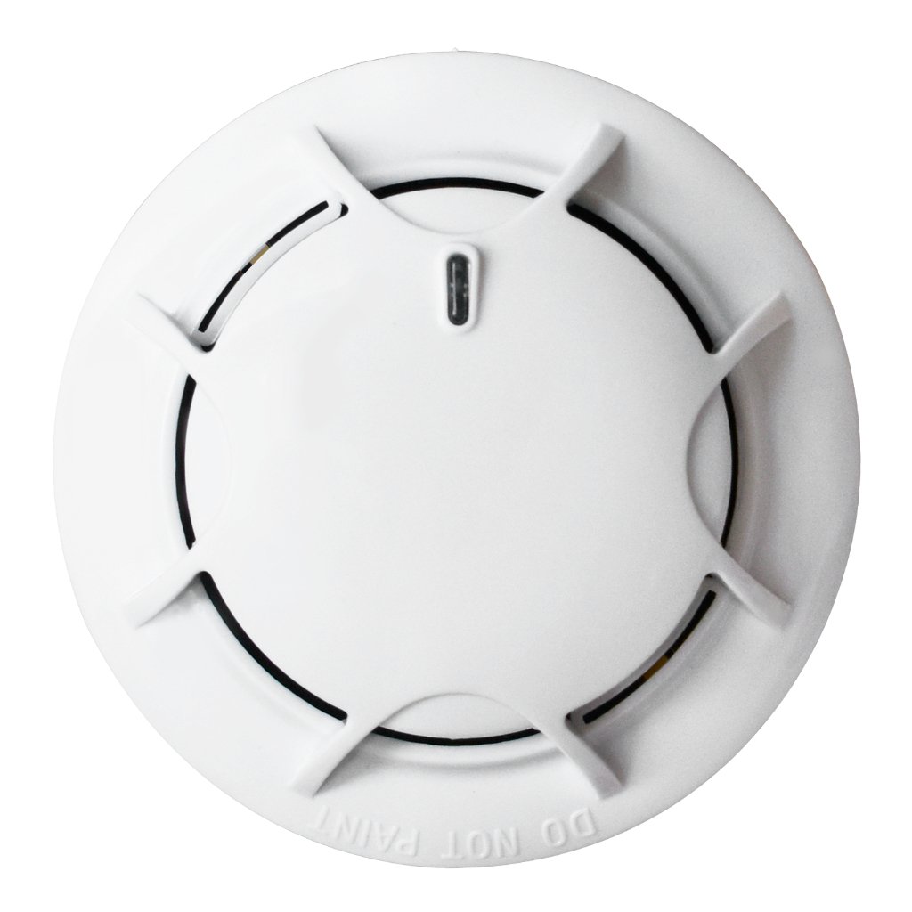 <60 μA (Reposo), ≤55 mA (Alarma). - Color Blanco (RAL 9016). - Material (caja) ABS. - Montaje en el techo. - Dimensiones (Ø x Al): 100 x 54.5 mm (base incluida). - Peso: 0,110 Kg.