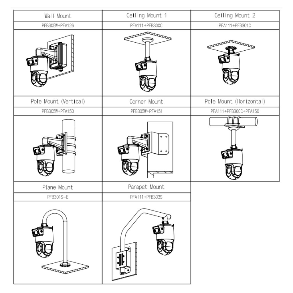 Soporte para montaje en pared tipo parapeto para PTZ