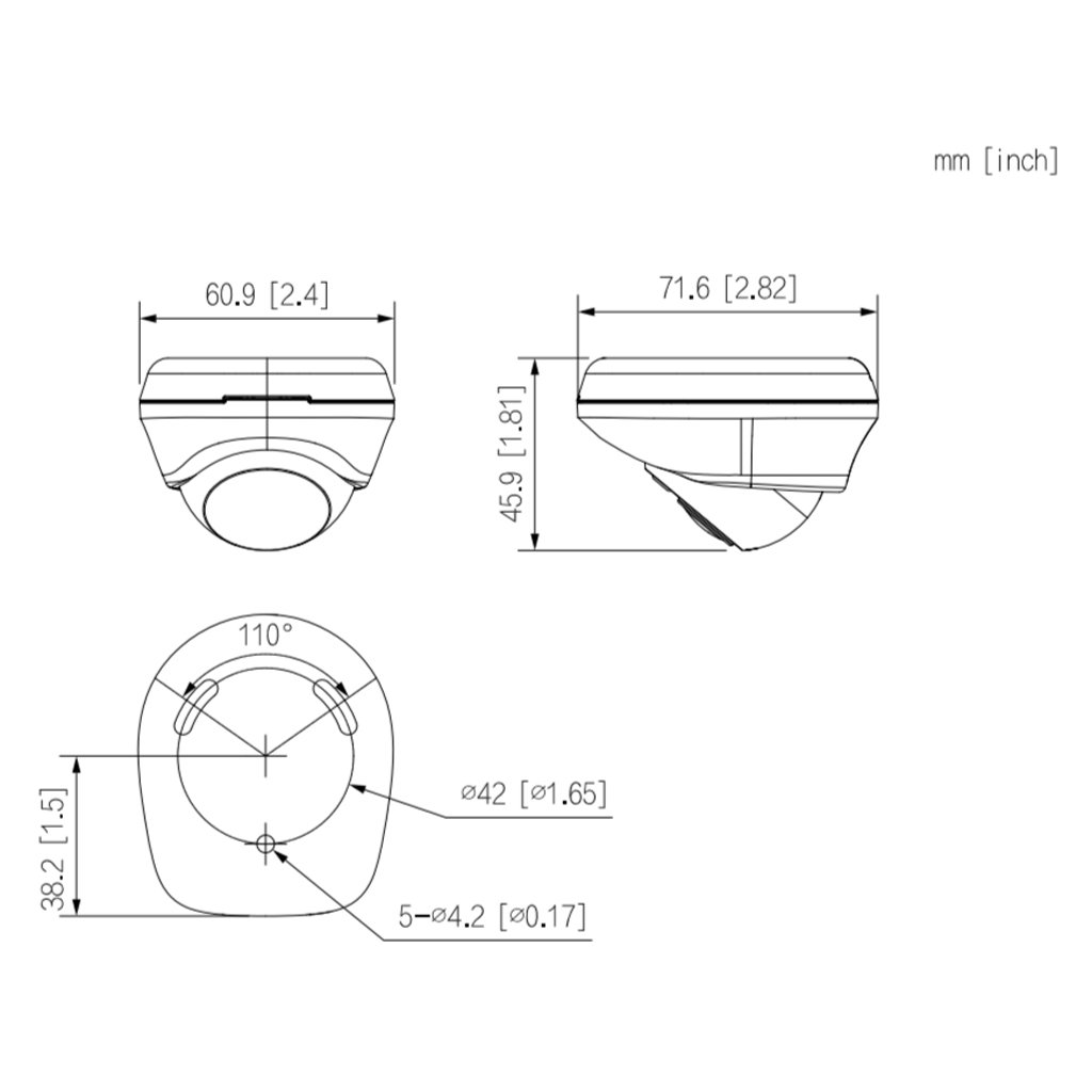 – Óptica fija de 2.1mm (132ºx69ºx164º (HxVxD)), F2.0.