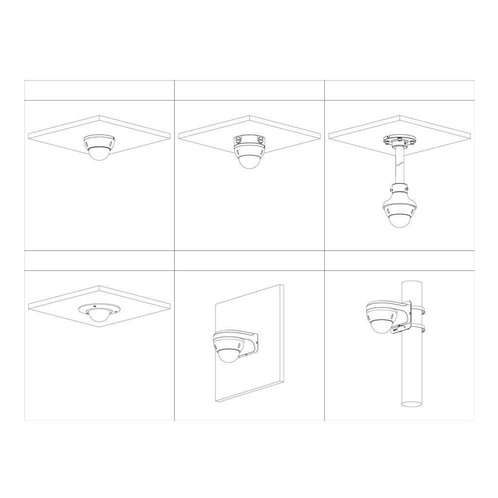 – Domo fijo IP67 e IK10 instalable a pared o techo (3 ejes).