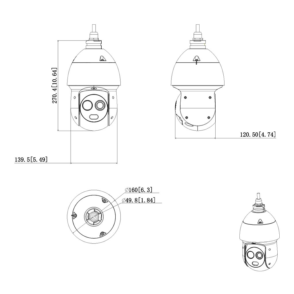 Domo PTZ Híbrido IP Térmico 256*192 3.5mm + 2M 4mm IP66 12V PoE+ AUDIO E/S AI