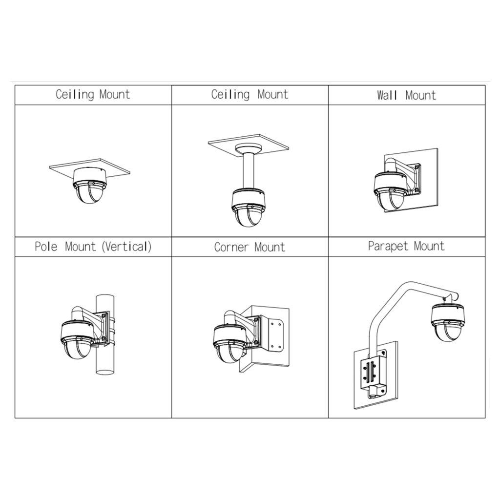 Pan: 0 ~ 360º, Tilt: -5 ~ 90º, auto flip 180º.