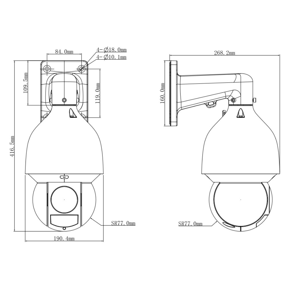 Pan: 0 ~ 360º, Tilt: -15 ~ 90º, auto flip 180º.