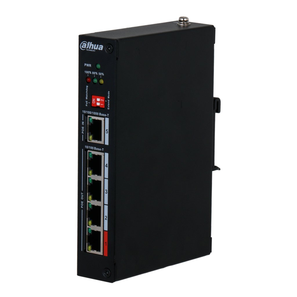 Extensor PoE 4 puertos 10/100 + 1 Uplink Gigabit PoE-In
