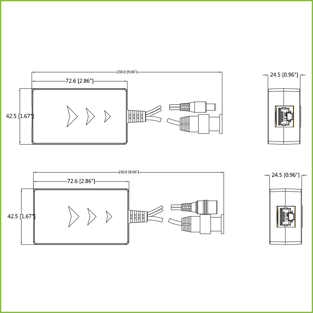 – Permite mandar vídeo HD y 12V a través de cable UTP CAT5/6.