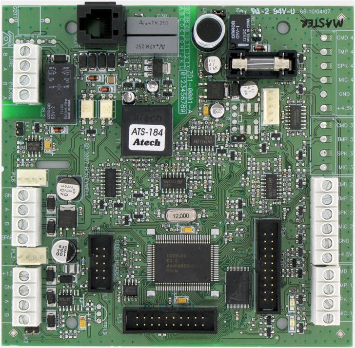 – La placa de audio se conecta al panel y a la línea telefónica.