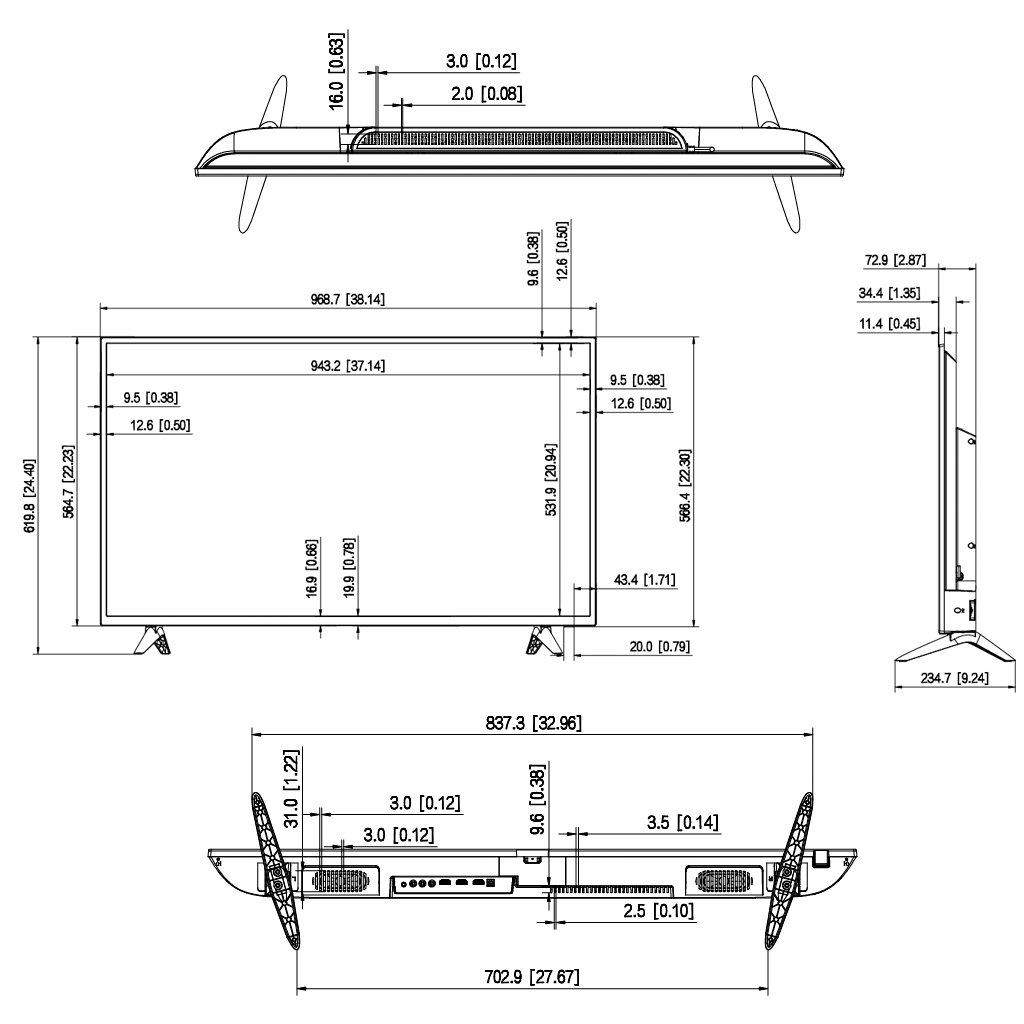 – Pantalla retroiluminada de DLED panorámica de 43″ (16:9).