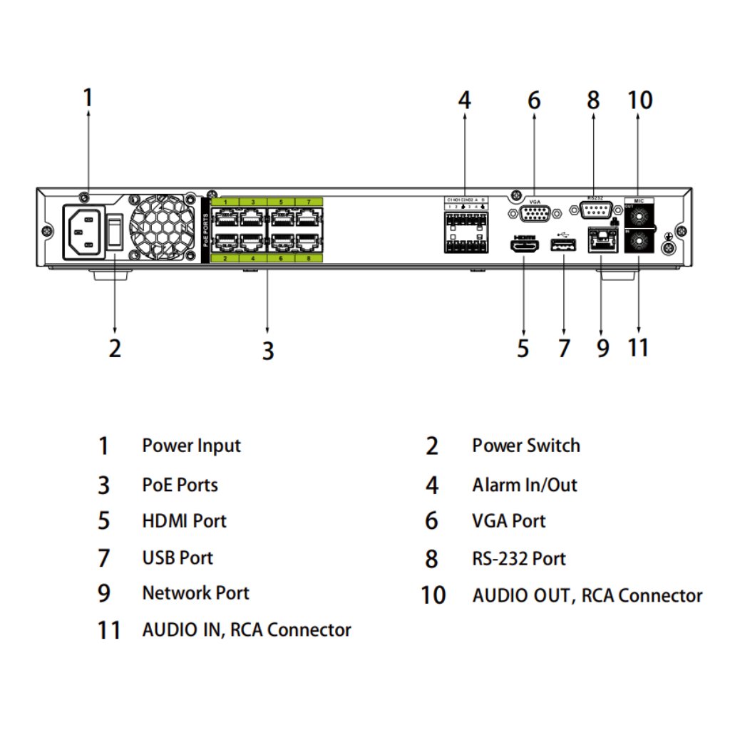 NVR 16ch 320Mbps H265 HDMI 8PoE (8ePoE/EoC) 2HDD E/S AI
