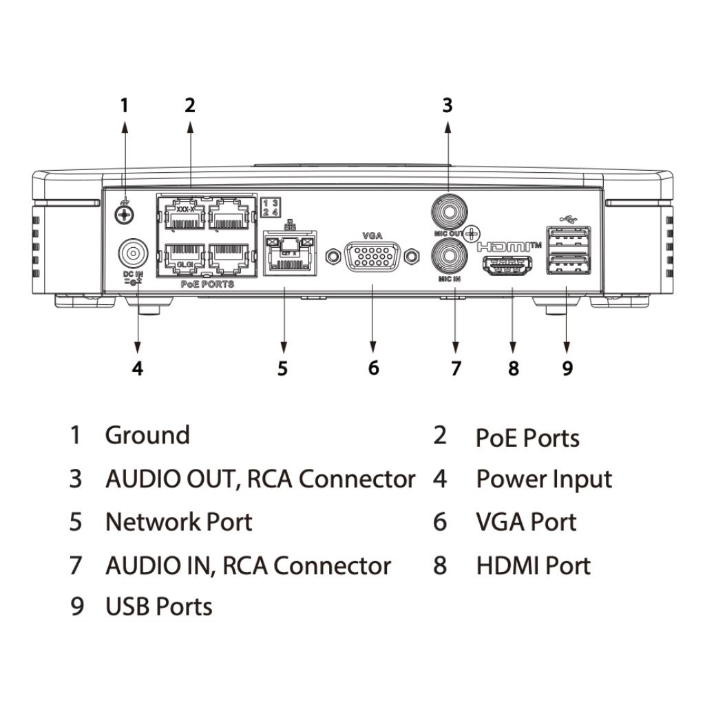 NVR 4ch 80Mbps 4K H265 HDMI 4PoE 1HDD con SSD-V800S960G