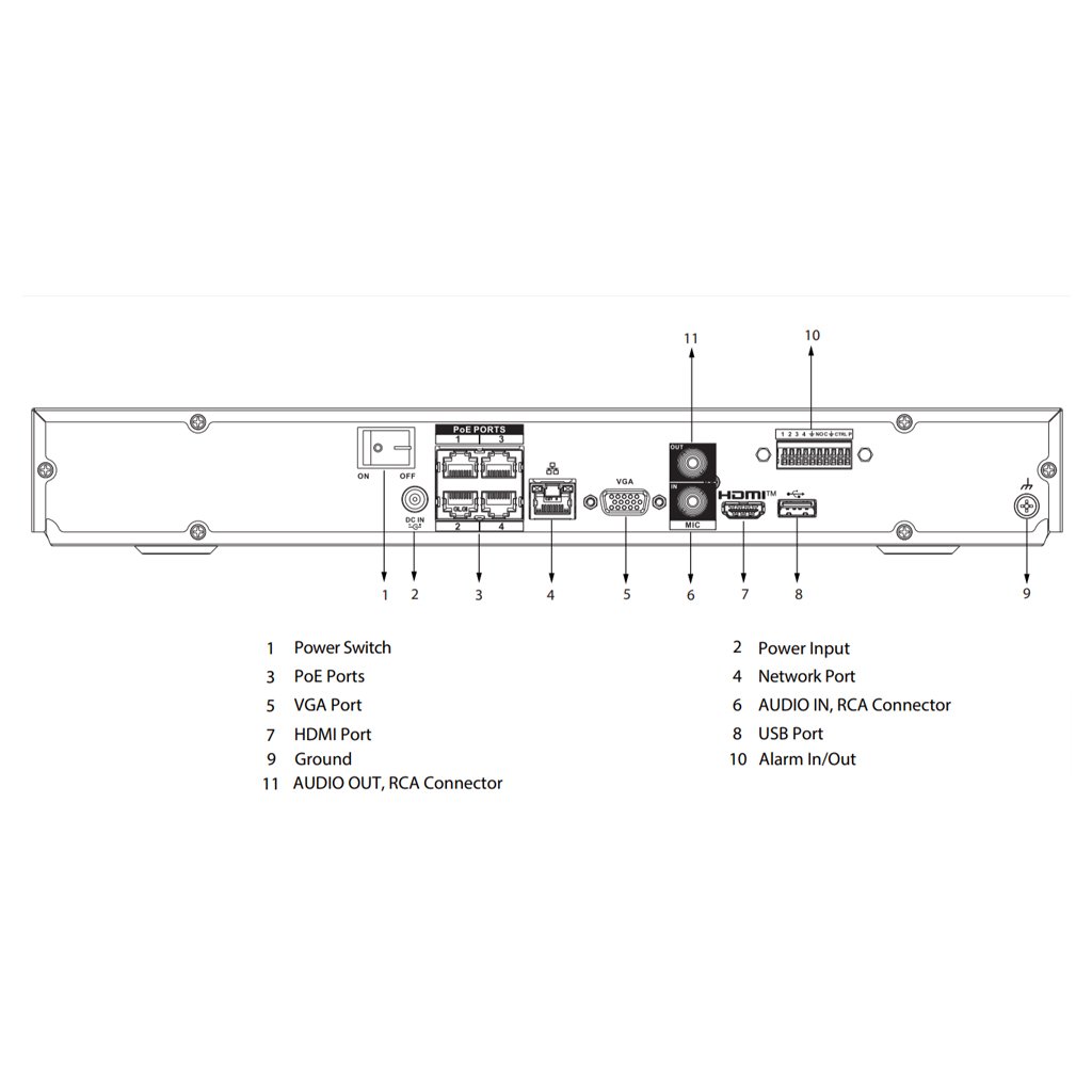 NVR 4ch 80Mbps 4K H265 HDMI 4PoE 2HDD E/S