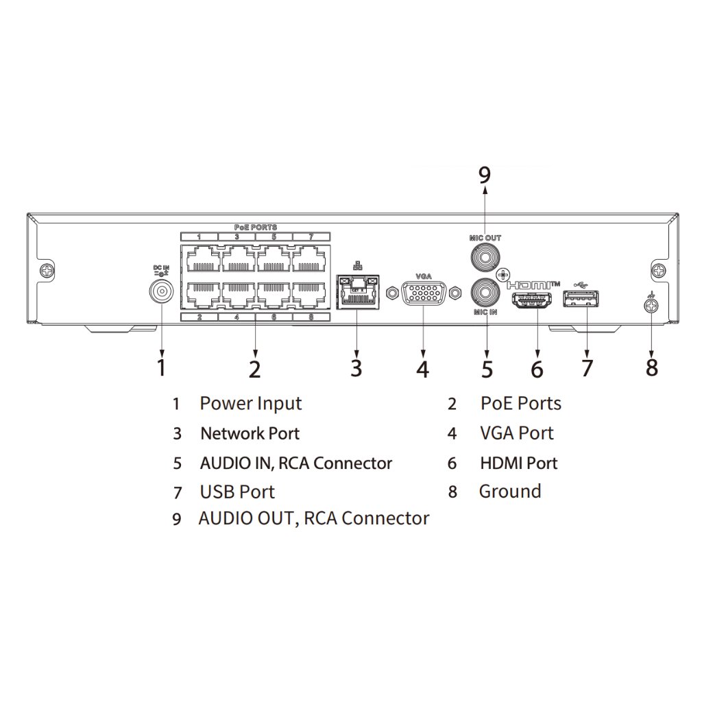 NVR 8ch 144Mbps H265 HDMI 8PoE 1HDD