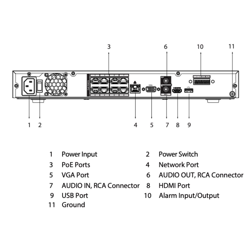 NVR 8ch 256Mbps H265 HDMI 8PoE 2HDD E/S AI