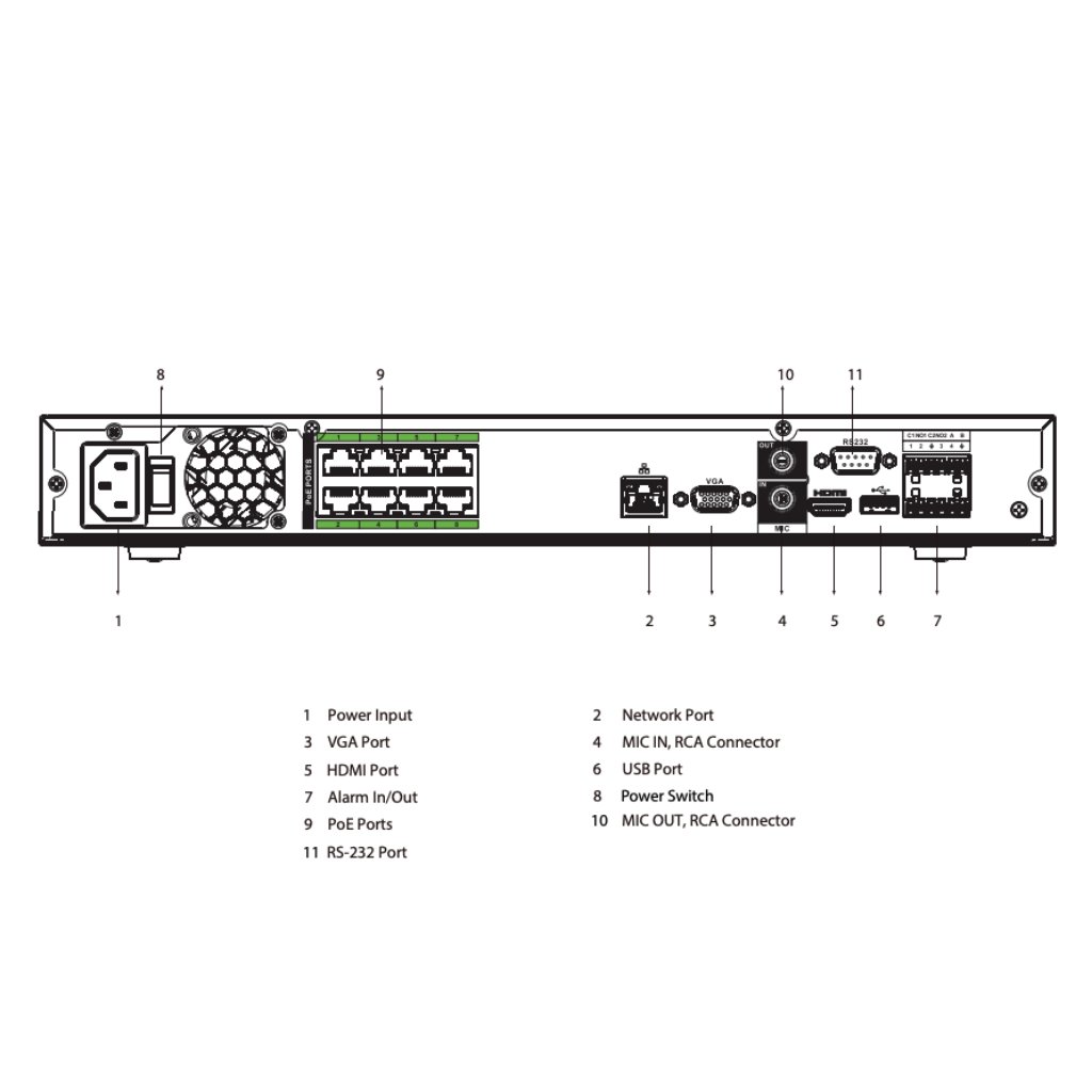 NVR 8ch 384Mbps H265 HDMI 8PoE 2HDD E/S AI