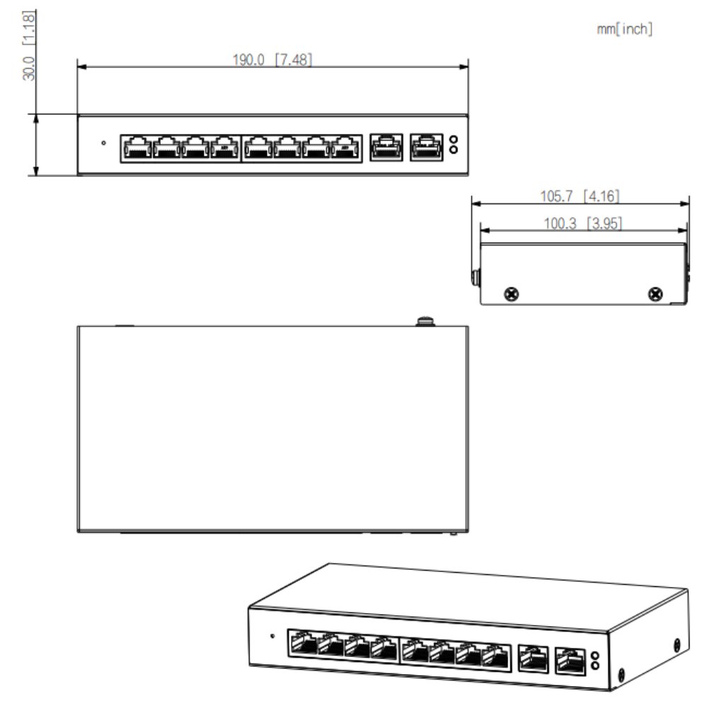 – Switch PoE 2.0 capa 2, de 8 puertos.