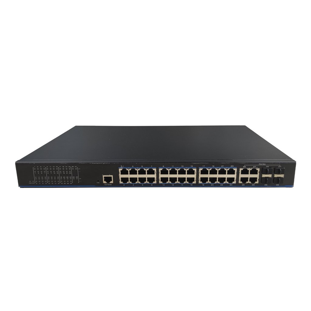 Switch PoE 24 puertos Gigabit + 4 Uplink Gigabit Combo (RJ45/SFP) 280W 802.3af/at 6KV Gestionable Layer2