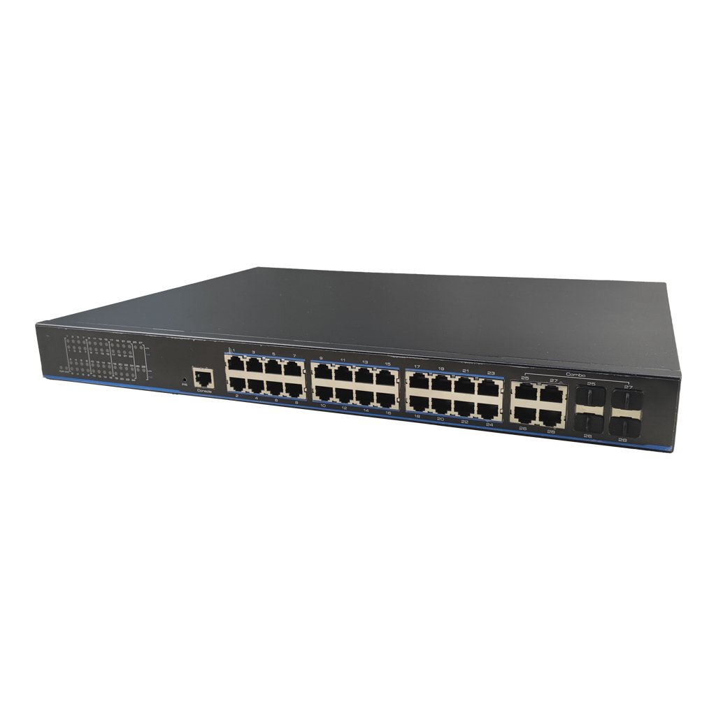 – Switch PoE, de 24 puertos Gigabit + 4 Uplink Gigabit + 4 SFP Combo.